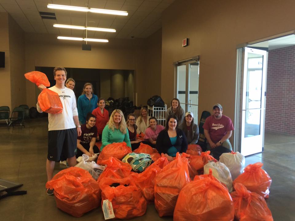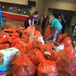 Kicking of with Speed Volunteering – volunteers gather at a local business to staple needs-lists to the signature orange bags. Another group of volunteers will drop off the orange bags in the selected neighborhood. After 2 weeks, GGFYP volunteers pick these bags up from people’s curbs and bring them back to a central location to be organized and handed off to several non-profits.