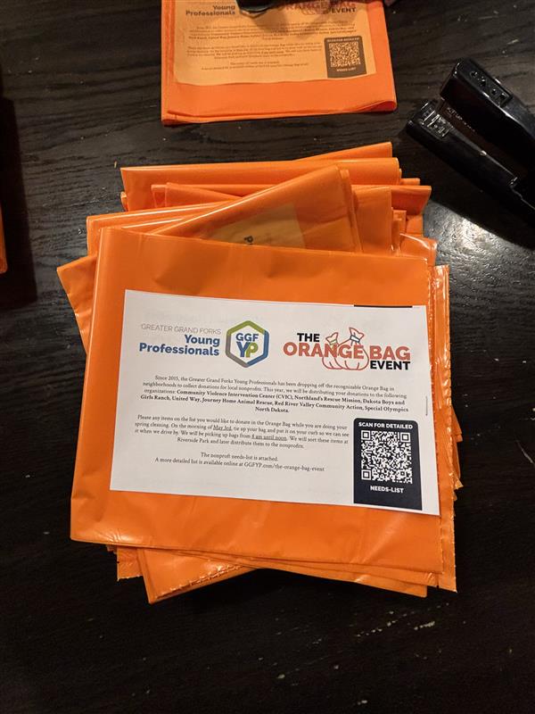 Starting in 2015, the Greater Grand Forks Young Professionals first executed the Orange Bag Event, an idea thought up by Becca Cruger.