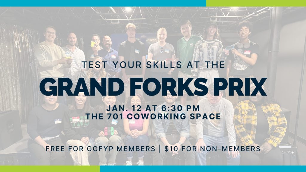 Grand Forks Prix at The 701 Coworking Space on January 12th, 6:30 PM Rev up your engines for a Mario Kart race where the competition is fierce, but the vibes are friendly! Race for gift cards and prizes, connect with fellow gamers, and spark some friendly rivalries on the track. Whether you’re a Rainbow Road veteran or just here for the banana peels, all skill levels are welcome. Bring your A-game, make new friends, and let the best racer win!