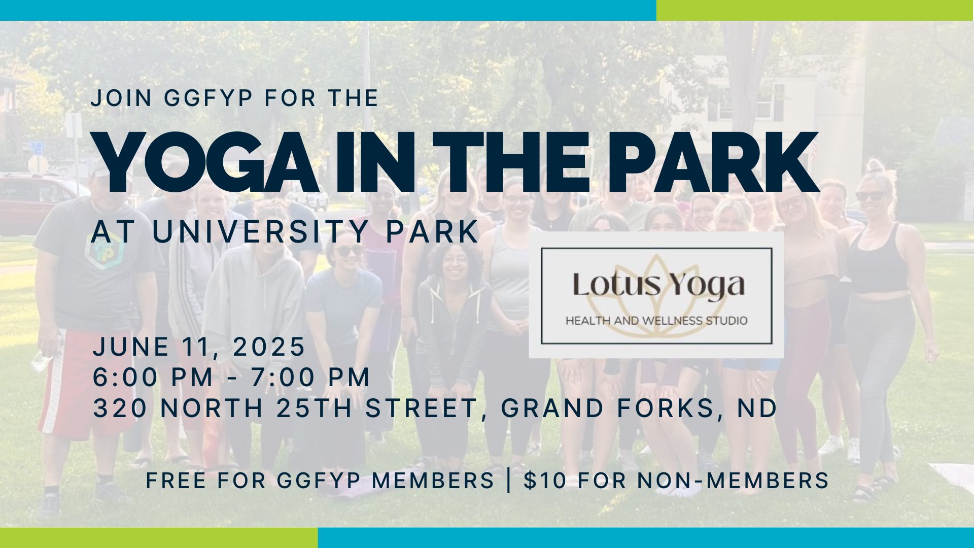 Reset & Unwind w/ GGFYP & Lotus Yoga June 11, 2025 6:00 PM - 7:00 PM University Park | 320 N 25th Street, Grand Forks We are excited to partner with our friends at Lotus Yoga for a second year to host |